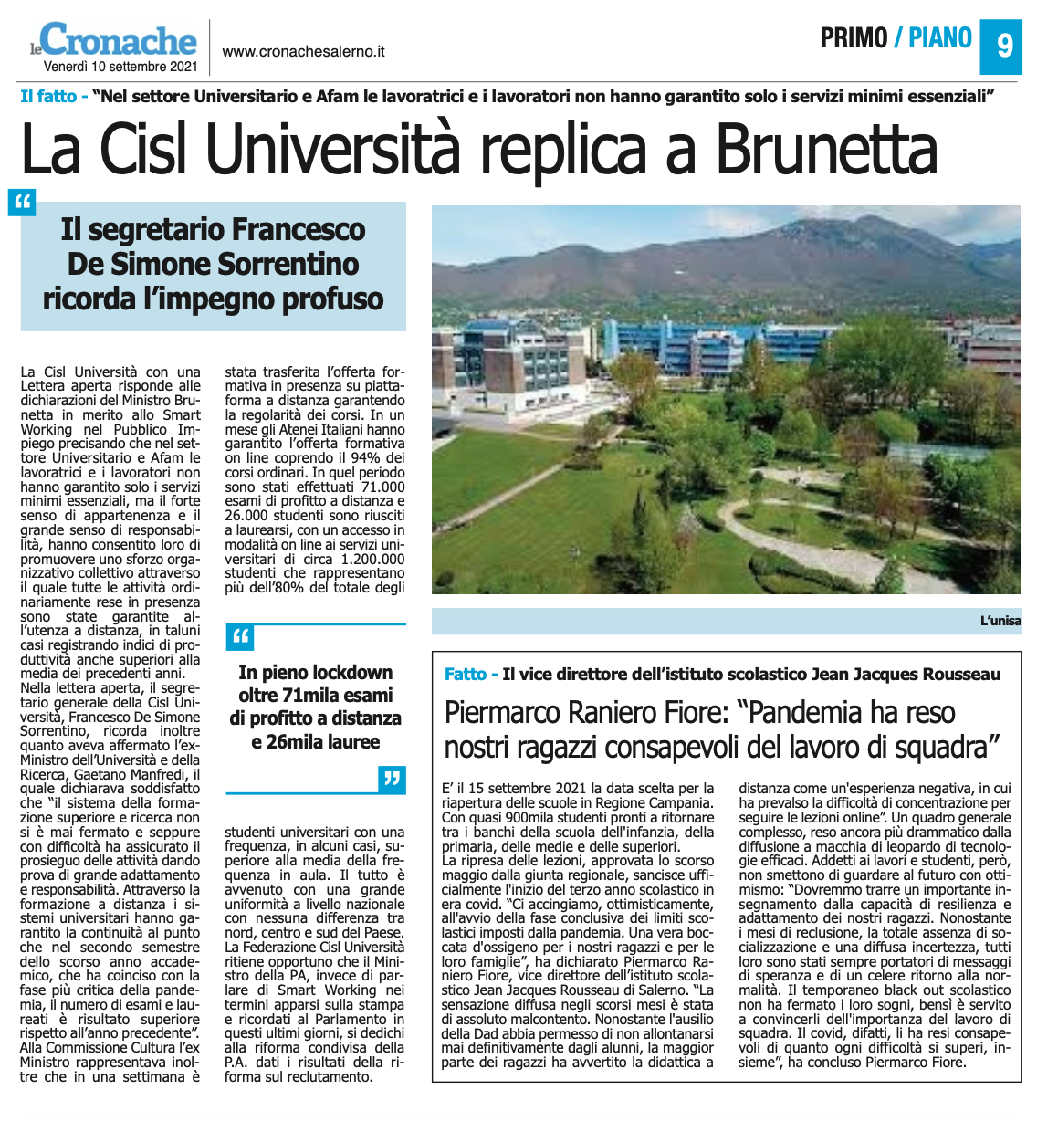 “Ci accingiamo, ottimisticamente, all’avvio della fase conclusiva dei limiti scolastici imposti dalla pandemia. Una vera boccata d’ossigeno per i nostri ragazzi e per le loro famiglie”, ha dichiarato Piermarco Raniero Fiore, vice direttore dell’istituto scolastico Jean Jacques Rousseau di Salerno. “La sensazione diffusa negli scorsi mesi è stata di assoluto malcontento. Nonostante l’ausilio della Dad abbia permesso di non allontanarsi mai definitivamente dagli alunni, la maggior parte dei ragazzi ha avvertito la didattica a distanza come un’esperienza negativa, in cui ha prevalso la difficoltà di concentrazione per seguire le lezioni online”. Un quadro generale complesso, reso ancora più drammatico dalla diffusione a macchia di leopardo di tecnologie efficaci. Addetti ai lavori e studenti, però, non smettono di guardare al futuro con ottimismo: “Dovremmo trarre un importante insegnamento dalla capacità di resilienza e adattamento dei nostri ragazzi. Nonostante i mesi di reclusione, la totale assenza di socializzazione e una diffusa incertezza, tutti loro sono stati sempre portatori di messaggi di speranza e di un celere ritorno alla normalità. Il temporaneo black out scolastico non ha fermato i loro sogni, bensì è servito a convincerli dell’importanza del lavoro di squadra. Il covid, difatti, li ha resi consapevoli di quanto ogni difficoltà si superi, insieme”, ha concluso Piermarco Fiore.